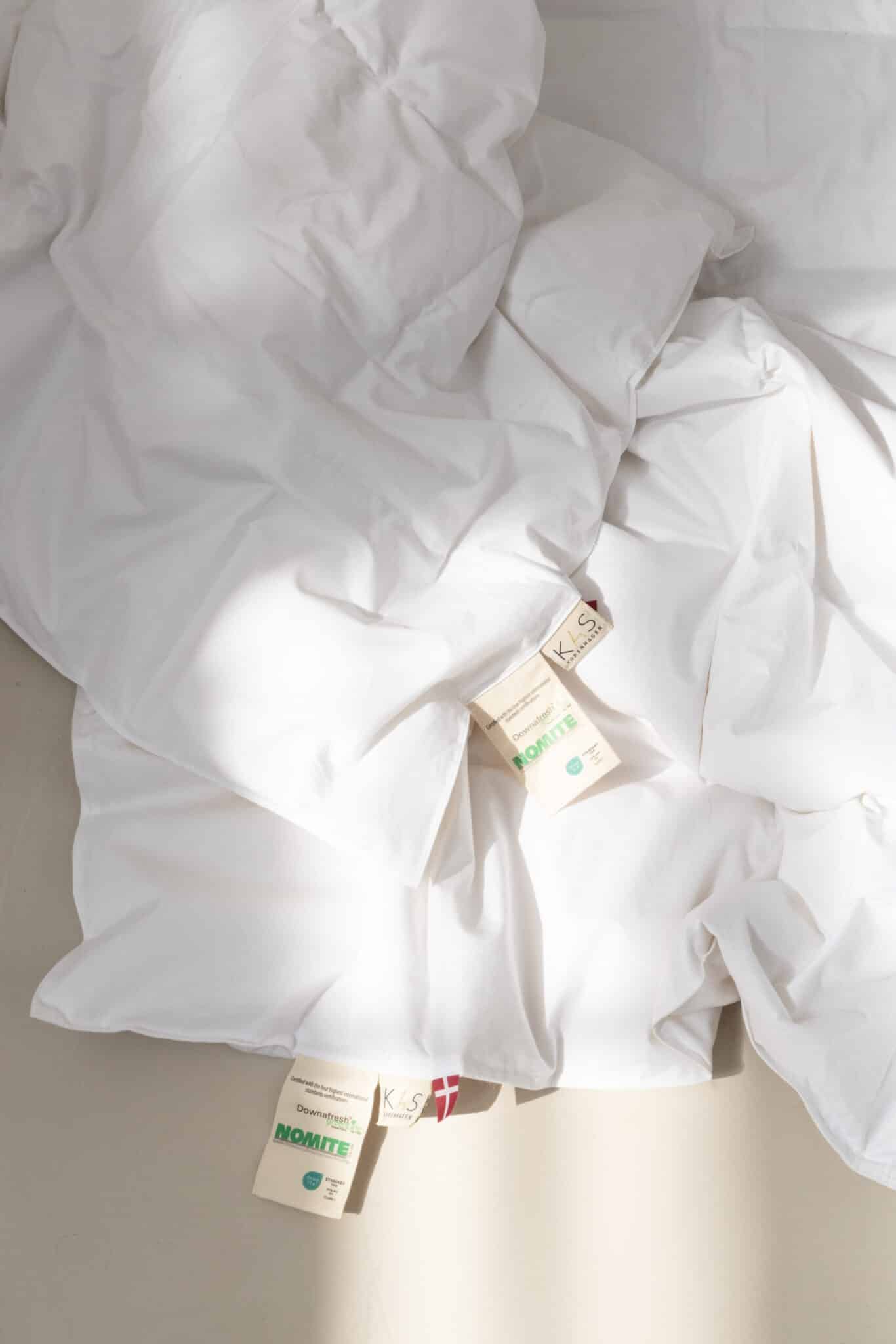 Dyner og puder bør altid vaskes ved 60 grader, da denne temperatur effektivt fjerner husstøvmider og andre mikroorganismer som fx skimmelsvamp.